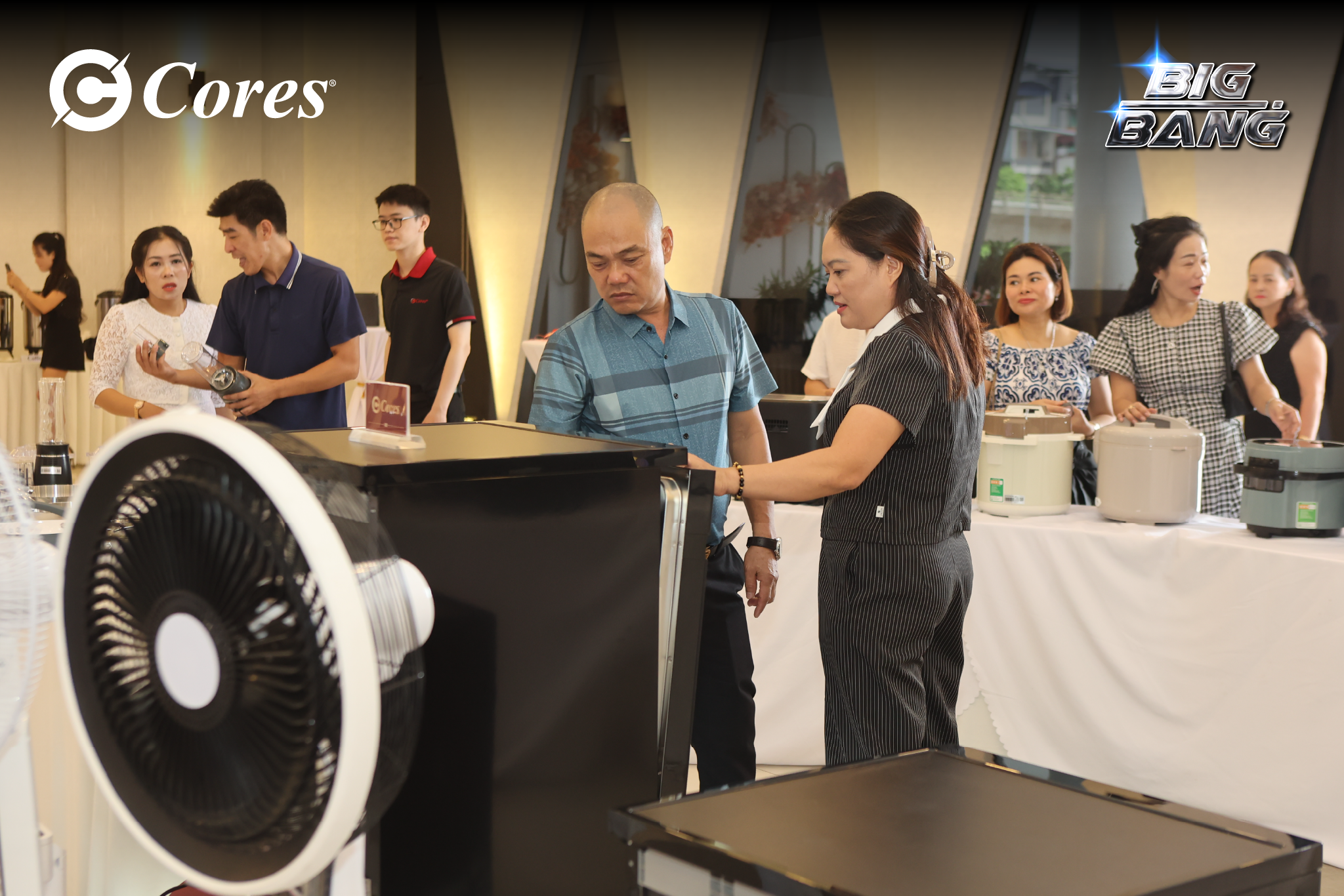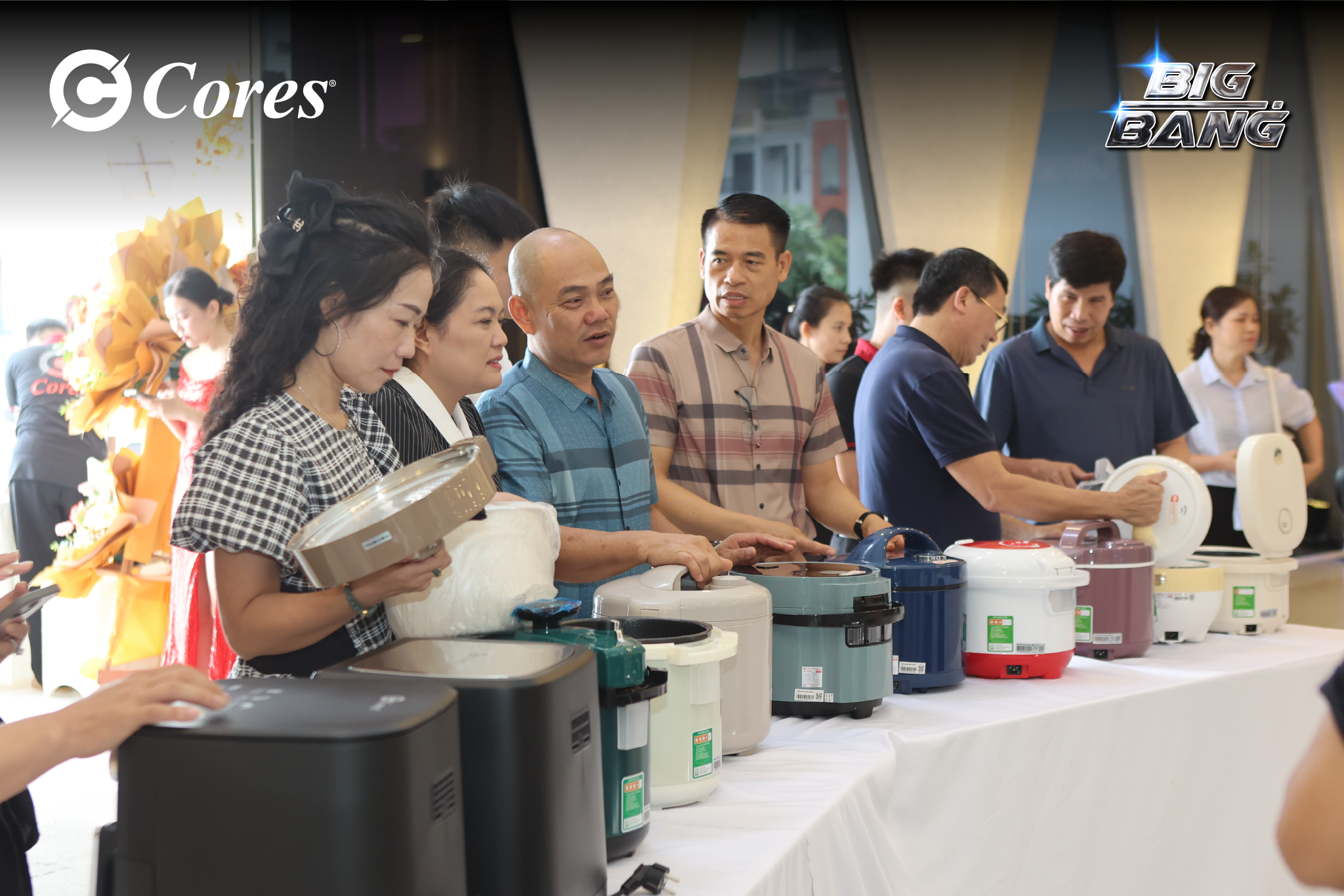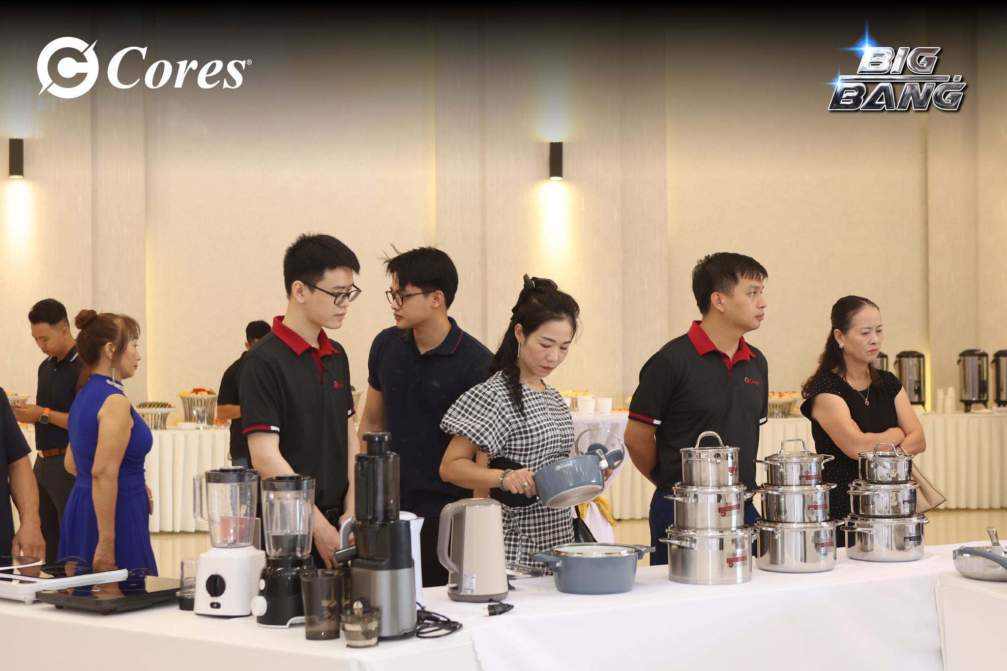 Tại sự kiện, khách hàng có cơ hội được chiêm ngưỡng toàn bộ danh mục sản phẩm của CORES đang được phân phối trên thị trường, từ thiết bị nhà bếp, đồ gia dụng, điện máy cho đến những sản phẩm công nghệ thông minh. Đặc biệt, CORES cũng tiết lộ định hướng phát triển với hàng loạt sản phẩm mới dự kiến ra mắt trong tương lai, hứa hẹn sẽ mang đến những trải nghiệm tiện nghi và chất lượng vượt trội cho người tiêu dùng Việt Nam.